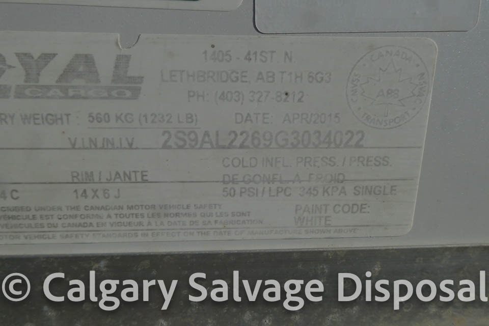 CSD Lot #96, Single axle, bumper pull, rear ramp, side door, Status:Active, Sale Date:Feb 19/26